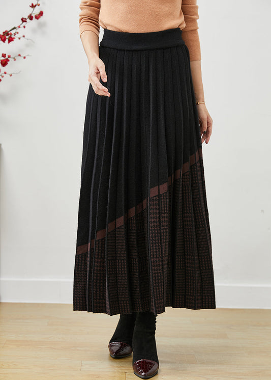 Women Black Elastic Waist Print Woolen Pleated Skirt Fall LY9811