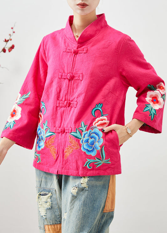 Women Rose Embroideried Jacquard Chinese Button Cotton Jackets Fall LY9867