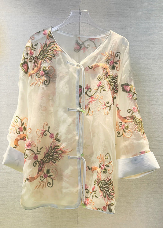 French Apricot Embroideried Button Patchwork Thin Tulle Tops Fall LY9761