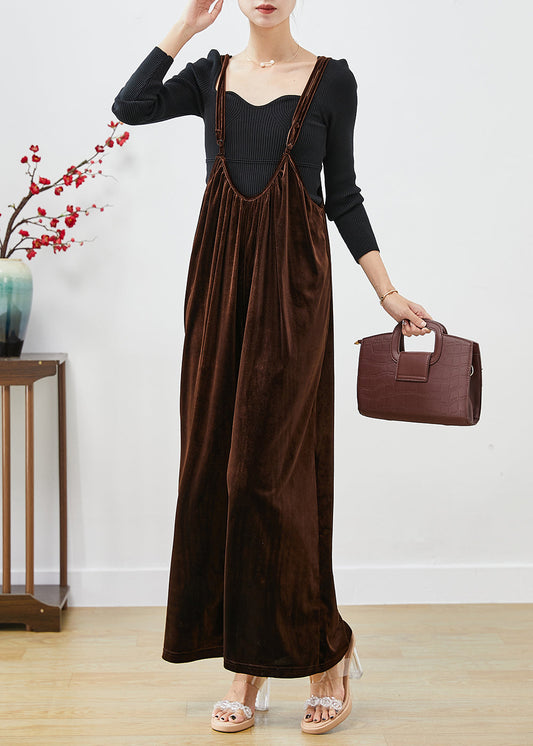 Plus Size Brown Oversized Silk Velour Wide Leg Strap Pants Fall LY9828