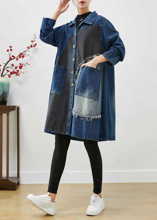 Unique Blue Asymmetrical Patchwork Denim Trench Coats Fall LY9817