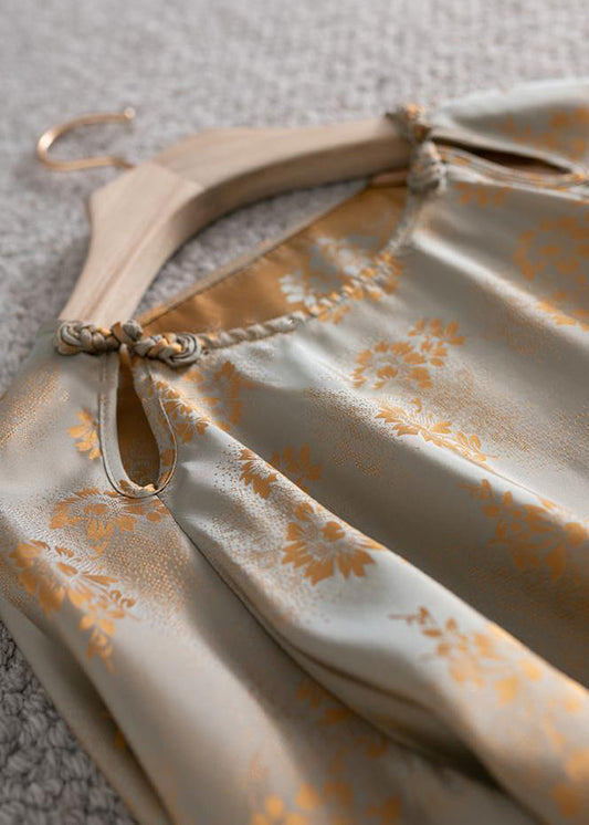 Vintage Yellow Button Print Patchwork Silk Shirts Long Sleeve LY9795