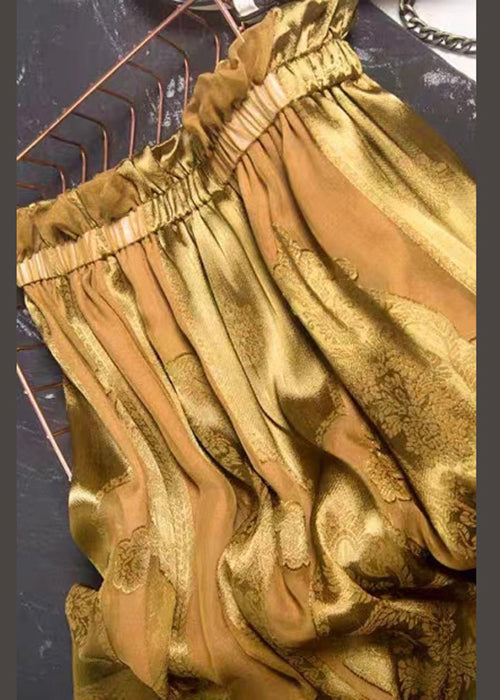Loose Yellow Embroideried Elastic Waist Silk Skirt Fall LY9802