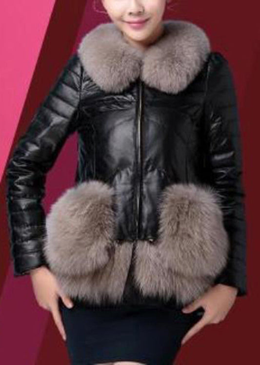 Grey Silm Fit Fuzzy Rabbit Leather And Fur Jacket Fox Collar Winter LY9468