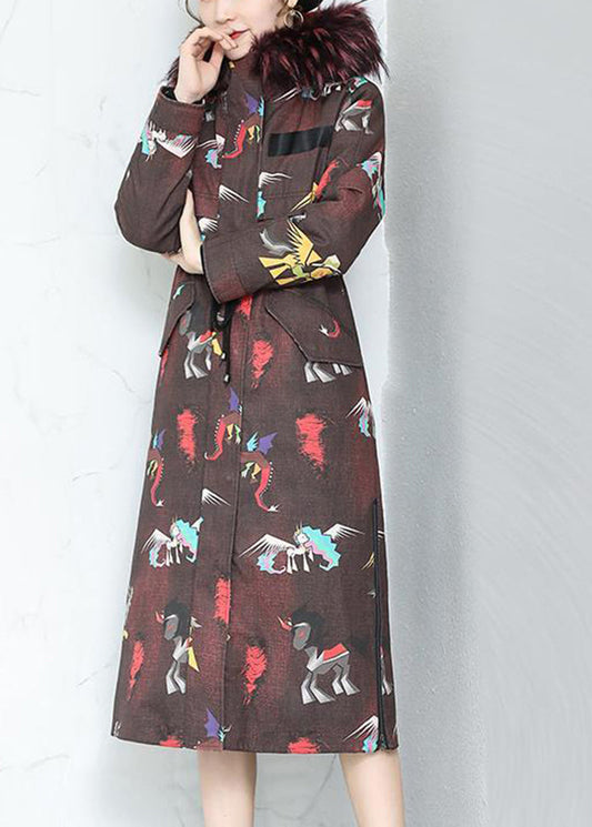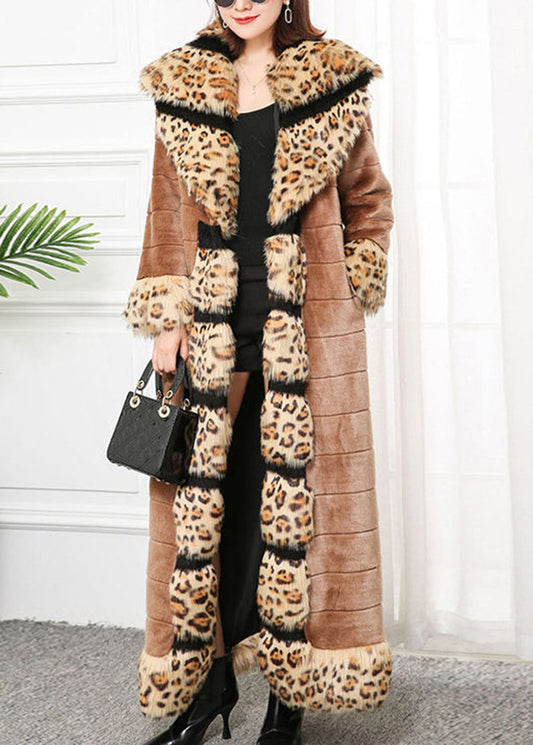 Bohemian Khaki Fox Collar Patchwork Leopard Faux Fur Coat Winter LY9463