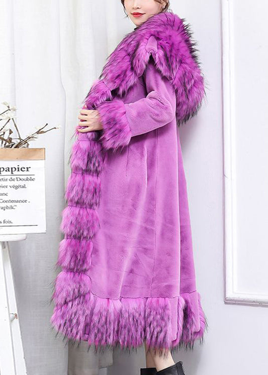 Chic Dull Purple Fur Collar Warm Mink Velvet Coat Winter LY9389