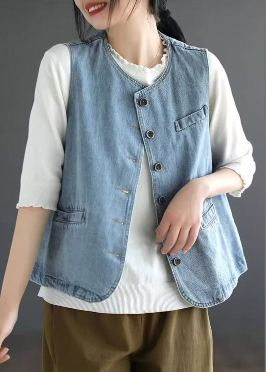 Light Blue Patchwork Denim Waistcoat Fall LY9462