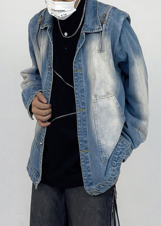Bohemian Blue Stand Collar Pockets Patchwork Button Denim Coats Fall LY9469