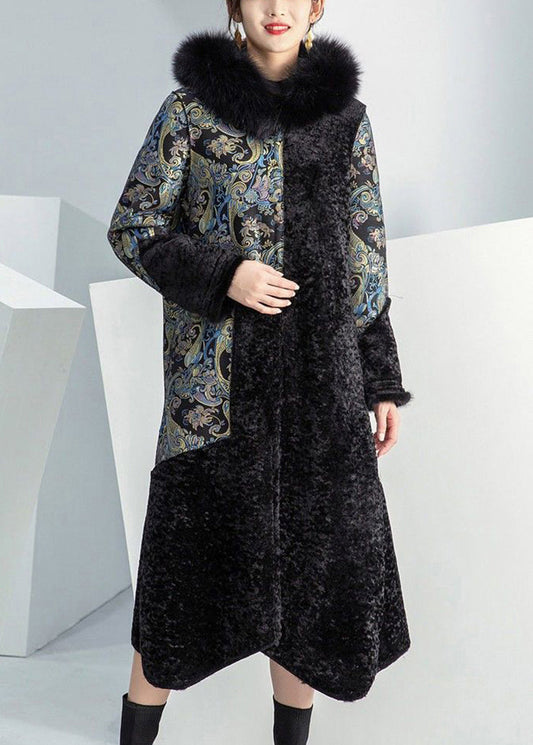 Plus Size Black Fox Collar Patchwork Wear On Both Sides Cashmere Coat Winter LY9457