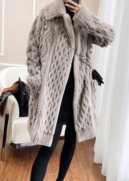 Style Light Grey Button Pockets Patchwork Mink Hair Knitted Coat Fall LY9384