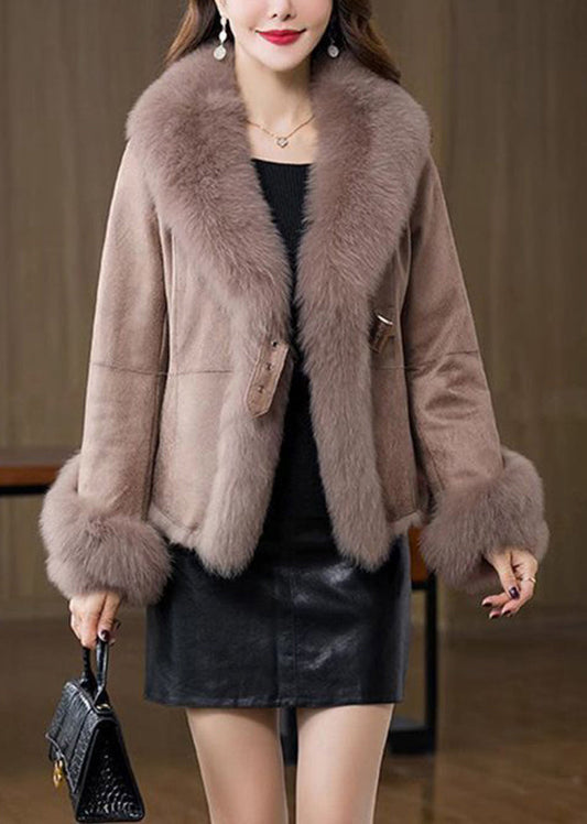 Unique Khaki Fox Collar Silm Fit Fuzzy Rabbit Leather And Fur Coats Winter LY9470