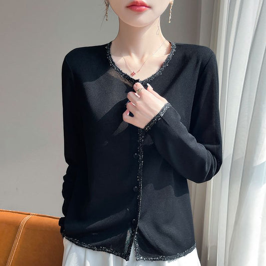 Crewneck Button-Up Plain Cardigan