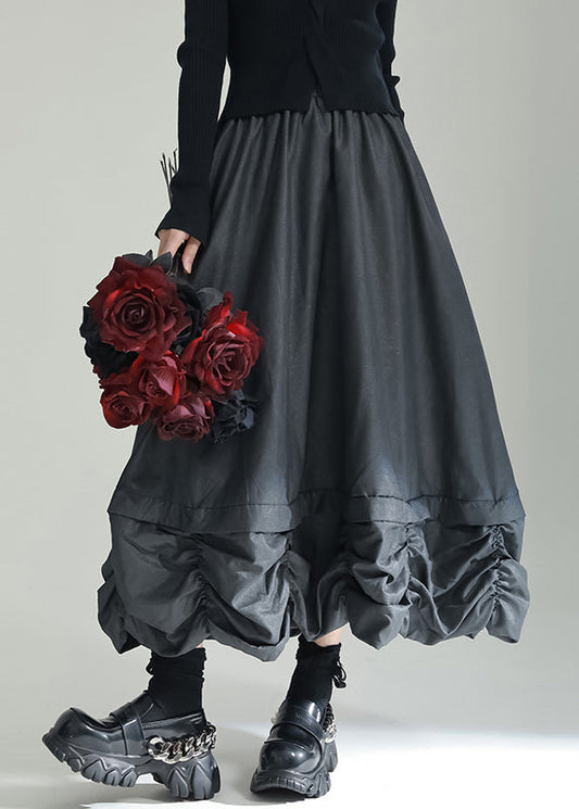 Black Pockets Patchwork Cotton Skirts Wrinkled Elastic Waist Fall LY9481