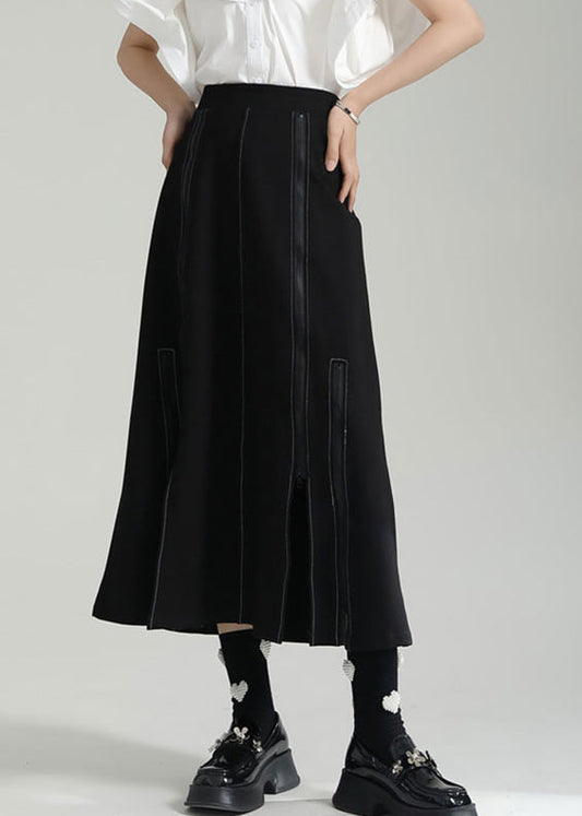 New Black Asymmetrical Zip Up Patchwork Cotton Skirts Fall LY9565