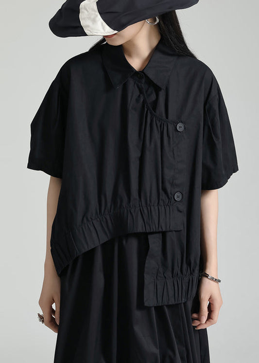 Style Black Asymmetrical Patchwork Cotton Shirt Tops Short Sleeve LY9567