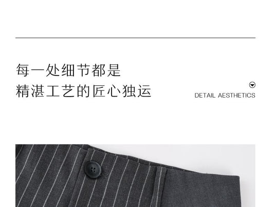Notch Lapel Plain Single-Breasted Blazer / V-Neck Vest / Drawstring Waist Loose Fit Pants