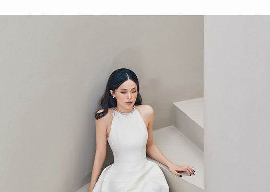 Sleeveless Rhinestone Plain Maxi A-Line Dress
