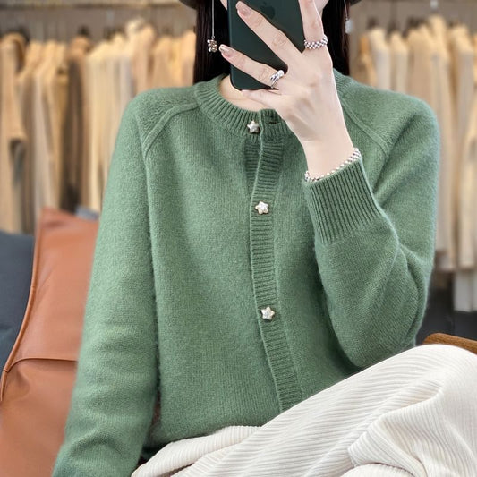 Short-Sleeve Crew Neck Button-Up Plain Cardigan