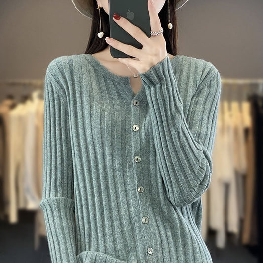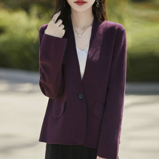 V-Neck Plain Ribbed Knitted Crop Cardigan