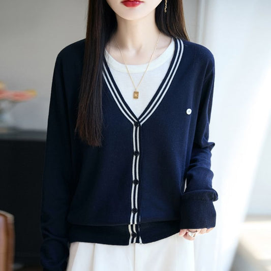 Mock Two-Piece Contrast Trim Button-Up Cardigan