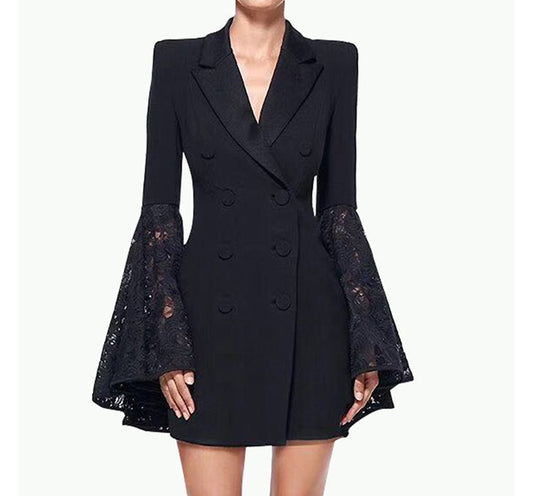 Flare-Sleeve Double Breasted Mini Blazer Dress