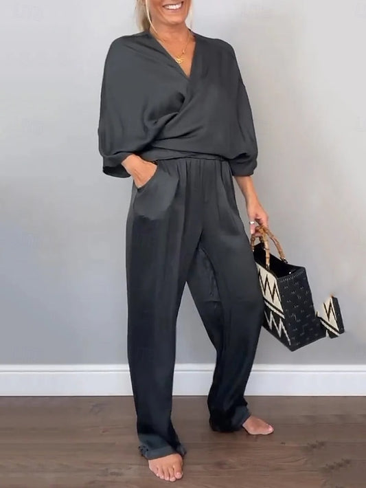 Women's Pants Sets Bolero Top Long Sleeve V Neck Plain