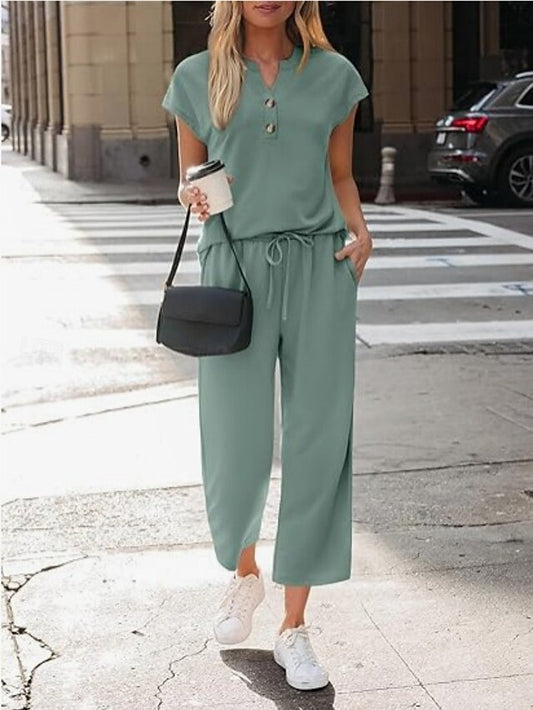 Women's Pants Sets Bolero Top Short Sleeve V Neck Plain