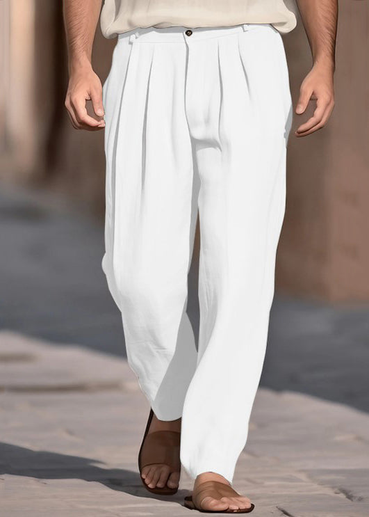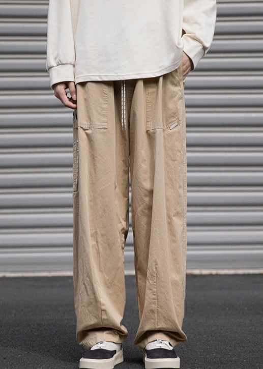 Solid Pants Men High Summer Khaki Boutique Cotton Waist Wrinkled
