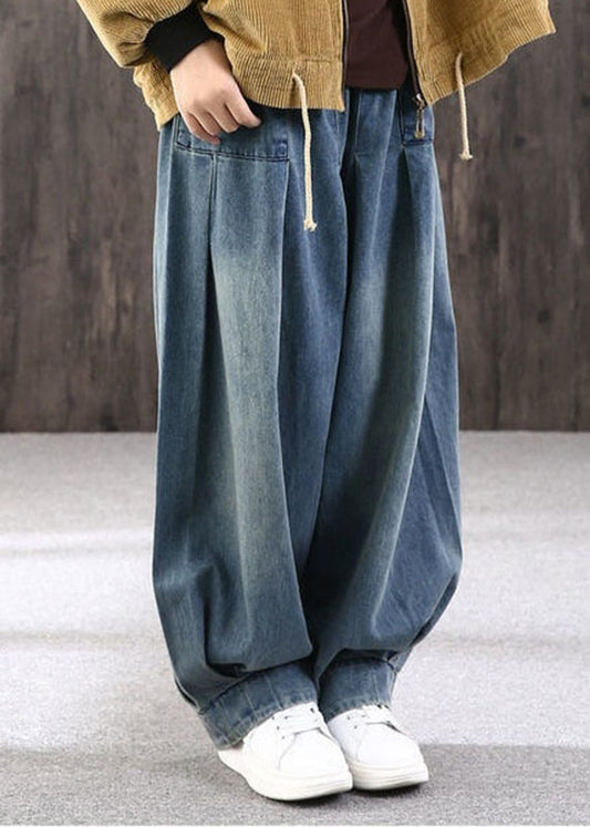 Crop Denim Style Elastic Trousers Blue Waist Light Pants Straight