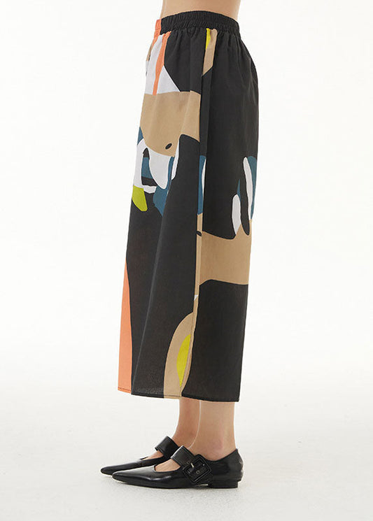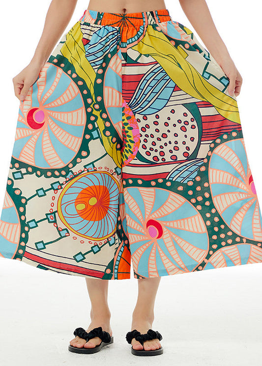 Fashion Orange Print Patchwork Cotton Wide Leg Pants Summer LY1215