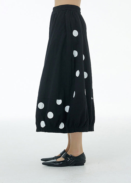 Art Black Wrinkled Dot Print Patchwork Cotton Wide Leg Pants Summer LY1233