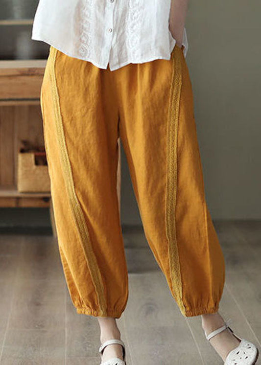 Chic Yellow Pockets Patchwork Linen Harem Pants Summer LY0228