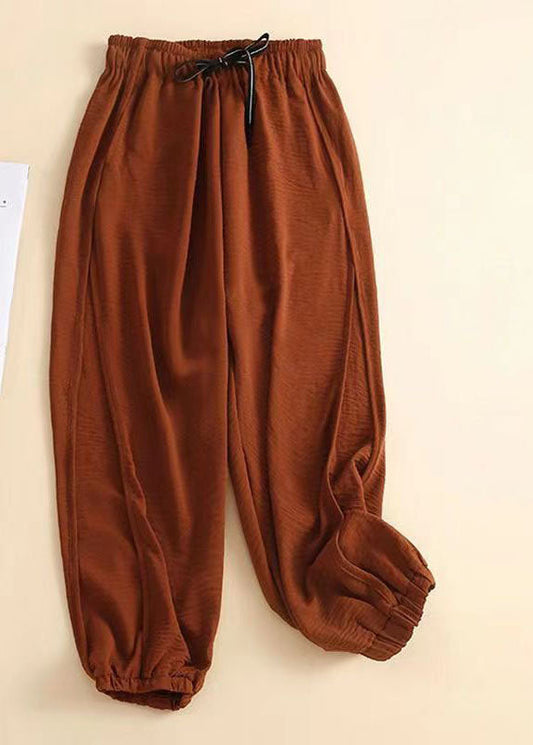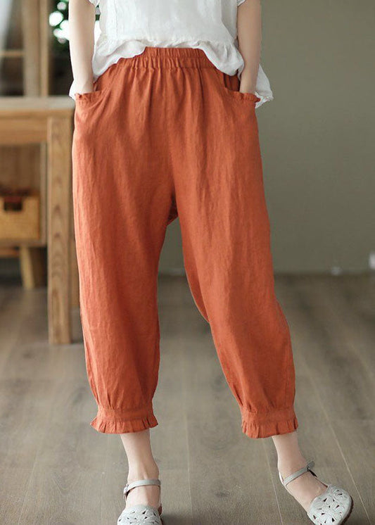 Chic Orange Wrinkled Drawstring Patchwork Linen Lantern Pants Summer LY0587