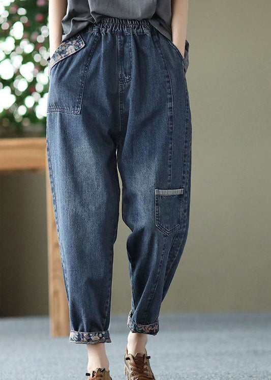 Style Blue Pockets Patchwork Denim Crop Pants Spring LY0230