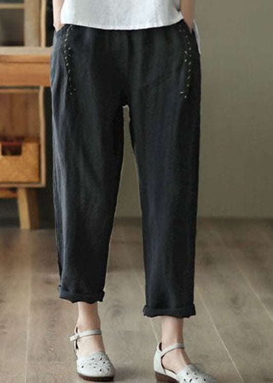 Vintage Black PocketsPatchwork Linen Pants Summer LY0215