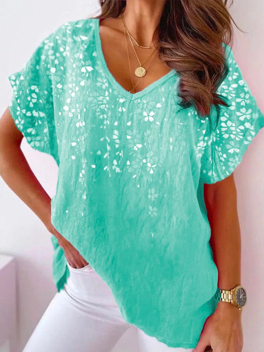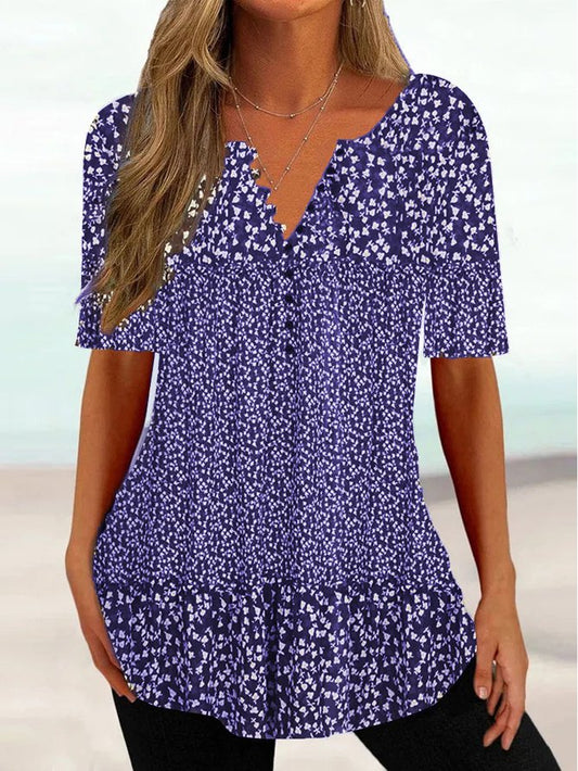 Women's Summer Tunics V Neck Floral Regular Fit Casual Shirt AH439