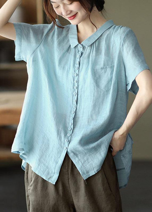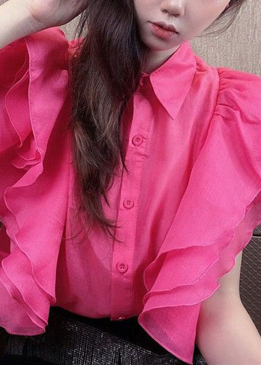 Simple Rose Peter Pan Collar Ruffled Patchwork Silk Shirt Top Summer LY3853