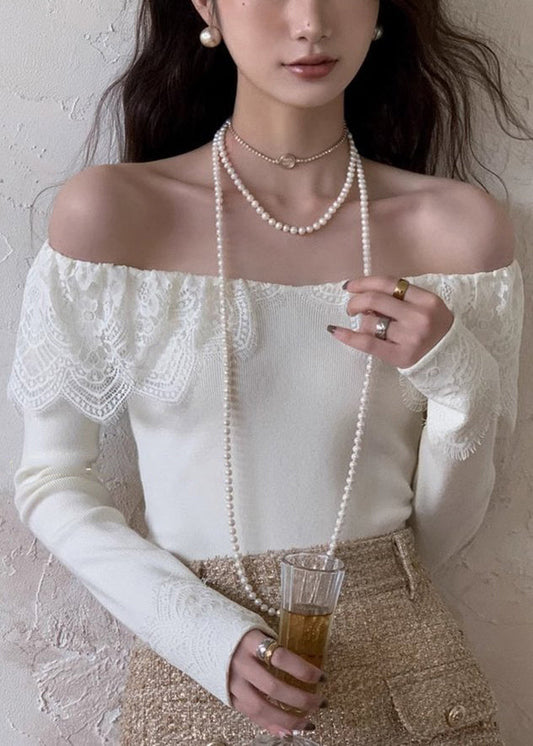 Lace Slim Out Fall Collar Fit Hollow Square White Shirt