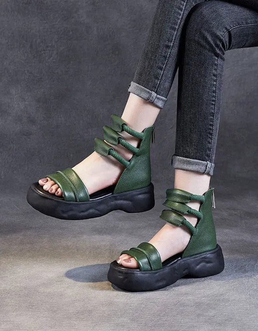 Grass Green Sandals Fitted Splicing Buckle Strap AH374