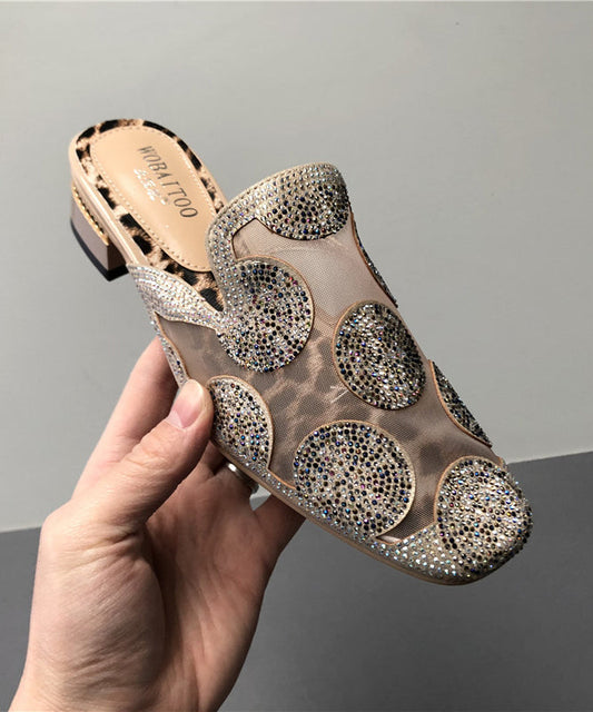 Yellow Splicing Stiletto Sandals Pointed Toe Hollow Out