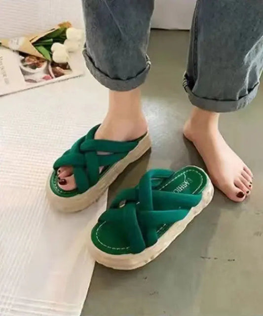 Green Slide Sandals Platform Boho Splicing Cross Strap Peep Toe LY8242