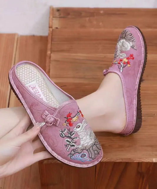 Pink Embroidery Retro Splicing Slide Sandals ML1041