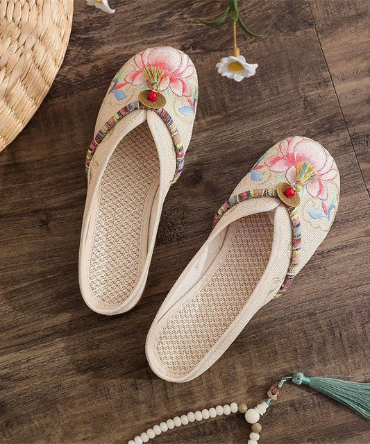 Beige Flat Slide Sandals Linen Fabric Comfortable Splicing Embroideried LY7699