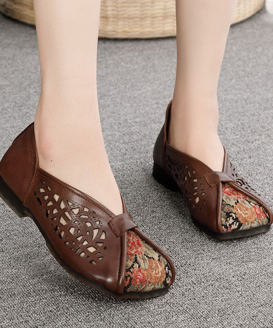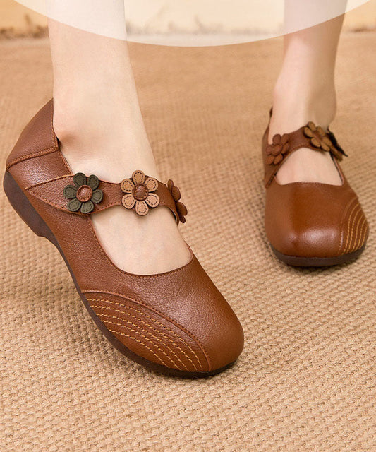 Brown Flats Cowhide Leather Women Splicing Flat Feet ShoesLC0532