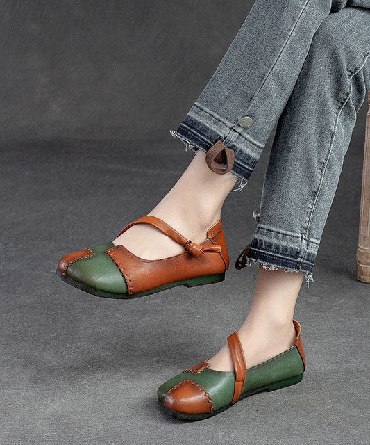 Handmade Splicing Green Flat Shoes For Women Lace Up Flats FA234