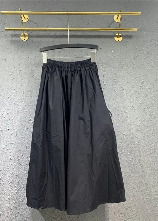 Casual Black Cinched Pockets Elastic Waist Patchwork Cotton Skirt Fall FA281
