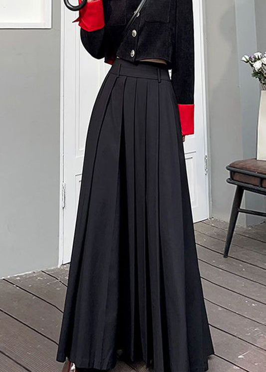 Unique Black Wrinkled High Waist Patchwork Cotton Pleated Skirt Fall AH540