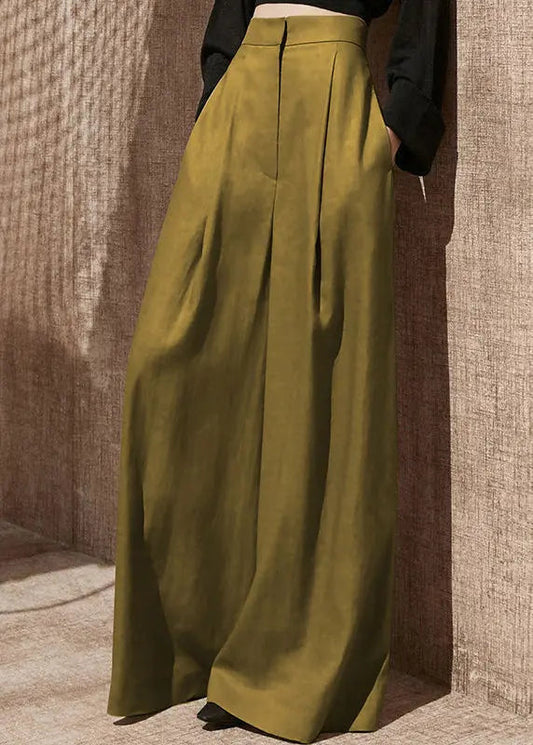 Women Blackish Green Pockets High Waist Patchwork Cotton Wide Leg Pants Fall LY9063