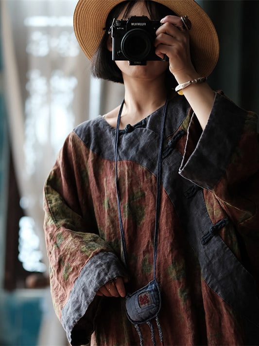 Women Summer Vintage Flower Colorblock Linen Dress RR024