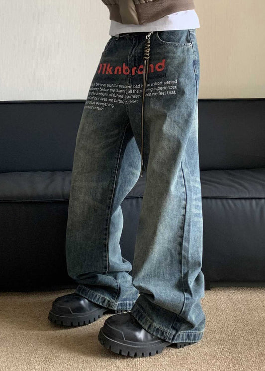 Vogue Denim Blue Graphic Print Patchwork Men Pants SA018